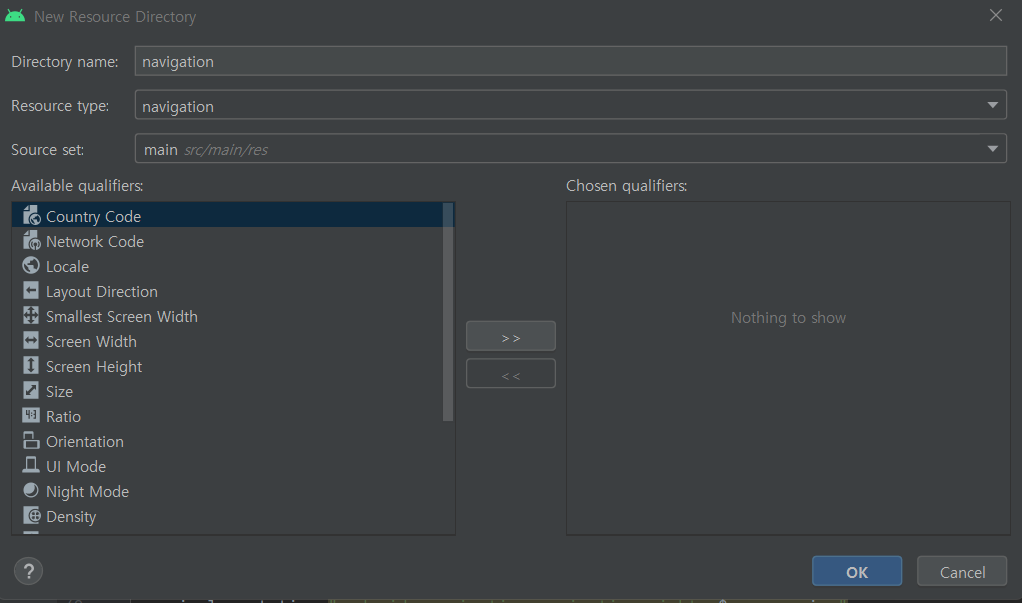 res에 New Resource Directory을 하여 navigation을 생성해준다.