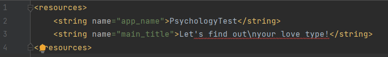 글을 넣기 위해선 res/values 폴더에 strings.xml을 아래처럼 설정해주면 된다.