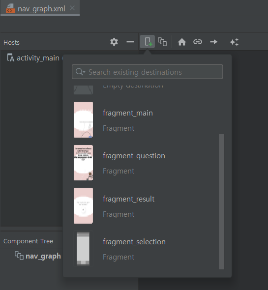 Fragment 코드를 보면 action 태그가 생긴 것을 볼 수 있다.