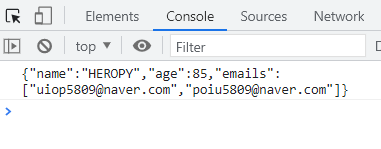 JSON 객체의 parse 메서드를 사용해야만 실제 JavaScript의 데이터로 콘솔에 출력된다.