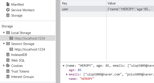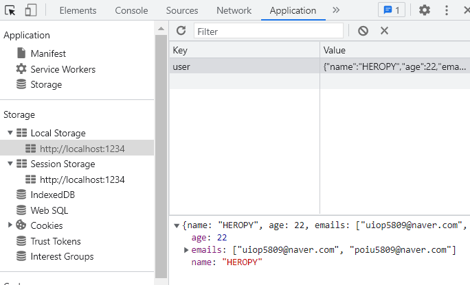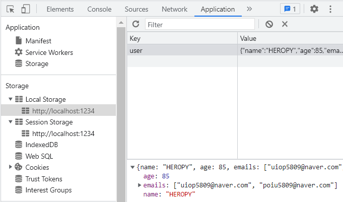Application의 Local Storage를 확인해보면 Key Value 형태로 보인다.