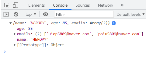 콘솔에선 객체를 출력해보면 age가 22로 바뀐 것을 볼 수 있으며