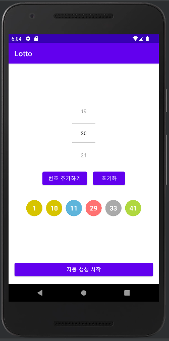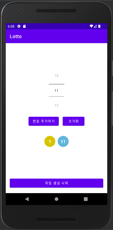 번호를 추가할 수 있고, 자동 생성을 시작해 추가한 것을 제외한 나머지 숫자들을 랜덤으로 뽑을 수 있다.