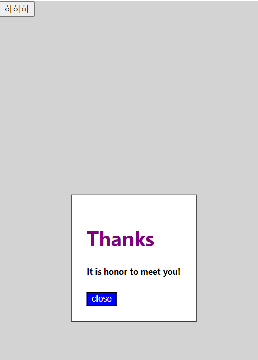 ThankyouDialog의 Open 버튼을 누르면 아래 하하하 버튼은 가려져서 보이지 않는 것을 볼 수 있다.