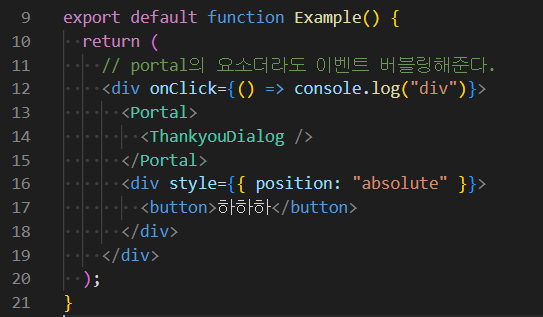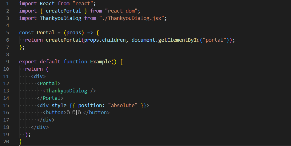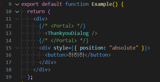 다음으로 Portal 컴포넌트를 만들어 다이얼로그를 Portal 컴포넌트로 감싸준다.