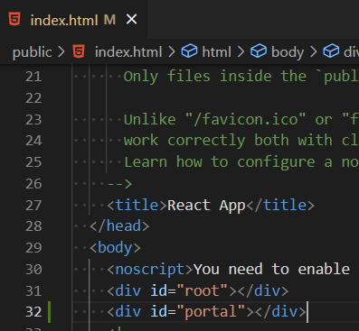 일단, index.html 파일의 root 밑에 portal도 만들어준다.