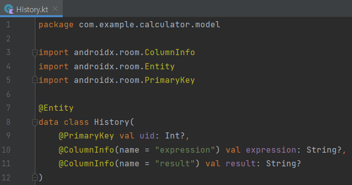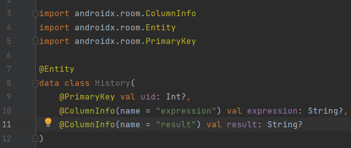 그래서 uid는 @PrimaryKey, expression과 result는 @ColumnInfo로 추가했다.
