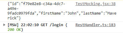 msw를 통해서 모킹된 response를 돌려주고 있는 모습을 확인할 수 있다.