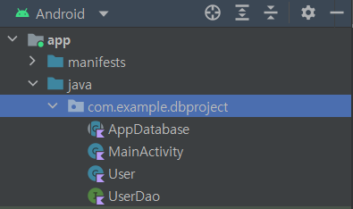 AppDatabase, User, UserDao를 만들어주면 RoomDB 초기 세팅은 끝난다!