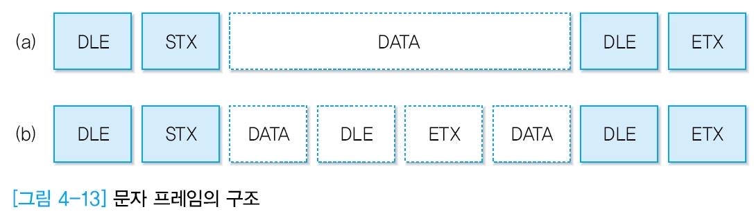 각 프레임 시작 위치에 DLE, STX 문자를 추가하고 끝나는 위치에 DLE, ETX를 추가해 프레임의 한 단위 구분