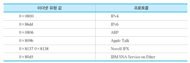 프로토콜 Type: Data에 담겨있는 상위 프로토콜의 종류 IPv4, ARP, IPv6, VLAN 등을 나타내는 데 사용