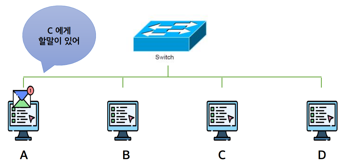 유니캐스트: 모든 호스트들에 전송하지 않고 해당 프레임의 수신 호스트로 지정한 호스트에만 전송