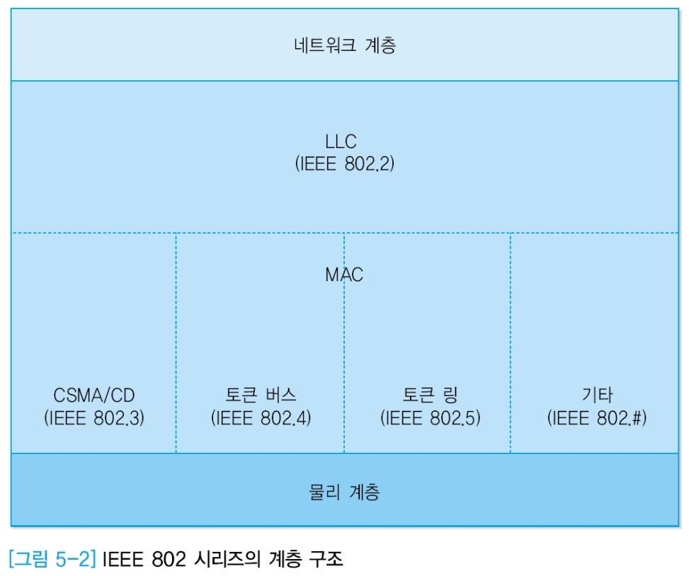 LAN 환경에서는 네트워크 자원을 효율적으로 처리하기 위해 데이터 링크 계층의 기능을 LLC 계층과 MAC 계층
