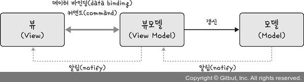 MVC의 C에 해당하는 컨트롤러가 뷰모델로 바뀐 패턴이다.